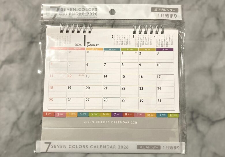 今回は、100均「セリア」の2026年版(2026年1月始まり)のカレンダー(壁掛け、卓上、シール等)について紹介しました。